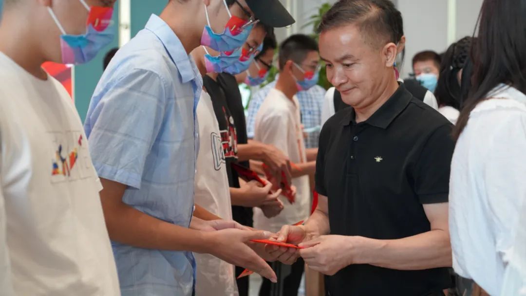 最后,由目前入職的家樂(lè)園大學(xué)生員工代表張學(xué)正、史文斌和廖青川等作為“過(guò)來(lái)人”,結(jié)合自己在學(xué)校和在家樂(lè)園工作的親身經(jīng)歷,為各位學(xué)子步入社會(huì)給出了真切的建議。學(xué)子們屏息凝神,認(rèn)真聆聽(tīng),看著學(xué)子們一張張略顯稚嫩又認(rèn)真嚴(yán)肅的臉龐,相信他們已經(jīng)對(duì)自己的大學(xué)生活有了明確的規(guī)劃和目標(biāo)。緊隨其后的就是激動(dòng)人心的頒獎(jiǎng)環(huán)節(jié),家樂(lè)園集團(tuán)董事長(zhǎng)廖禮基親手為考取985、211和本一院校的學(xué)子們頒發(fā)了寄托著企業(yè)祝福與心意的5000元和3000元助學(xué)金。