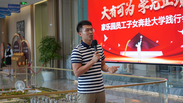 學(xué)子們坐在售樓部裝滿(mǎn)書(shū)籍的階梯狀空間內(nèi),首先觀看了激動(dòng)人心的人生夢(mèng)想和國(guó)家發(fā)展視頻,主持人崔國(guó)銘介紹了家樂(lè)園發(fā)展史,當(dāng)學(xué)子們看到自己父母為之奮斗的企業(yè)發(fā)展的規(guī)模如此龐大,眼神里流露出驕傲與渴望。在分享環(huán)節(jié),首先是四名優(yōu)秀的學(xué)生代表從不同角度分享了自己勵(lì)志的學(xué)習(xí)經(jīng)歷,自己對(duì)大學(xué)的期望和規(guī)劃,并各自送給即將步入大學(xué)的同齡人一句箴言,讓大家對(duì)大學(xué)生活都有了進(jìn)一步的思考。其后,由目前正在大學(xué)就讀的員工子女代表張秋雯、邢宇哲給大家分享了自己在大學(xué)學(xué)習(xí)、生活的經(jīng)驗(yàn),他們作為學(xué)長(zhǎng)學(xué)姐,對(duì)大學(xué)生活有了親身的體驗(yàn),給各位學(xué)子們提出了真實(shí)而中肯的建議,相信學(xué)子們一定會(huì)少走許多彎路。