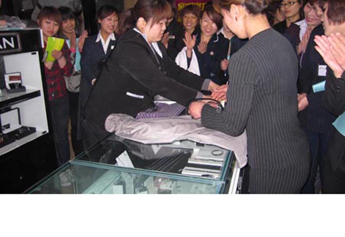 為了深入貫徹落實(shí)“以顧客為中心”的服務(wù)理念,大洋百貨男裝商場(chǎng)于2010年4月30日進(jìn)行了緊張激烈的銷售服務(wù)技能總決賽。比賽共分為三階段:第一階段為商品FAB介紹。掌握商品的賣點(diǎn)是銷售人員必須具備的一項(xiàng)能力,此階段目的就是讓員工充分了解商品,并且能夠用最生動(dòng)的語言為顧客介紹商品;第二階段為服裝疊放。目的是讓銷售人員能夠在最短的時(shí)間內(nèi)將服裝疊放整齊且別出心裁,以便于售賣過程中吸引顧客的眼球;第三階段為知識(shí)問答階段。主要是考察一線員工對(duì)于員工行為規(guī)范及日常知識(shí)的掌握情況。每位選手都積極參與,精心準(zhǔn)備,她們的精彩表現(xiàn)贏得了觀眾的陣陣掌聲。通過此次比賽,很好的鍛煉了員工的語言表達(dá)能力,提升了團(tuán)隊(duì)凝聚力,也使員工對(duì)“以顧客為中心”理念的深入,提高了員工的服務(wù)意識(shí)及服務(wù)技能