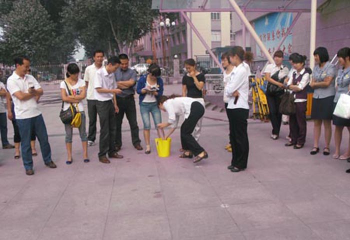 為緩解員工工作壓力,豐富員工業余活動,購物廣場自6月4日起將每周組織一次群體娛樂活動。活動由各部門輪流組織,活動內容要針對性地突出員工協作配合與團隊意識,讓員工在輕松愉快的比賽活動中活躍氣氛,放松心情。 6月4日由廣場辦公室首先組織開展“勝利果實分享”活動,在這一游戲中,員工們踴躍上陣,一同體會與團隊成員分享“勝利”的愉悅。