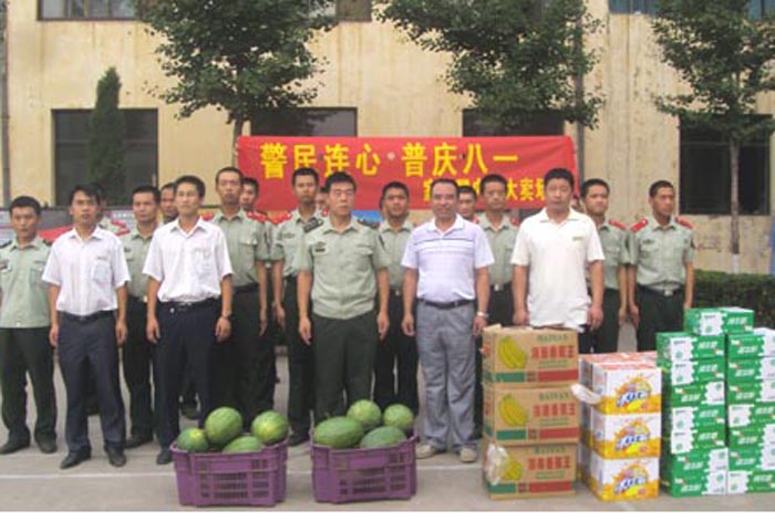 7月30日,內丘大賣場舉辦了“警民連心 普慶八一”慰問活動,副總經理梁雪堂等人對縣武警中隊和公安消防大隊、公安交警支隊及公安派出所進行慰問,為他們送去慰問品,并向他們致以節日的問候和崇高敬意。