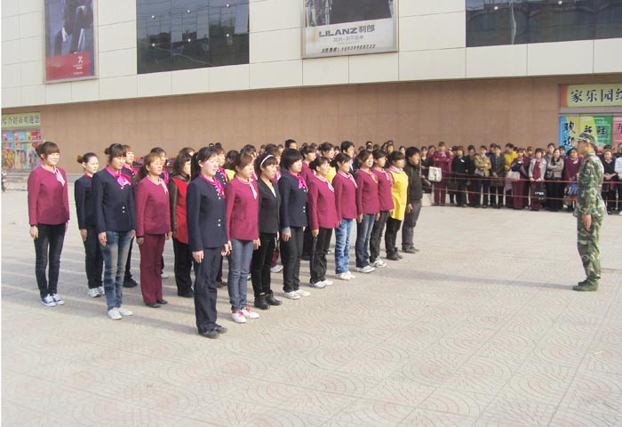 為增強(qiáng)員工的團(tuán)隊(duì)意識,提高工作執(zhí)行力,家樂園百貨內(nèi)丘店防損部于4月13日—4月20日利用早晨時間組織商品部主任以上人員、采購人員及后勤員工分兩批分別進(jìn)行了四天的軍訓(xùn)歷程。