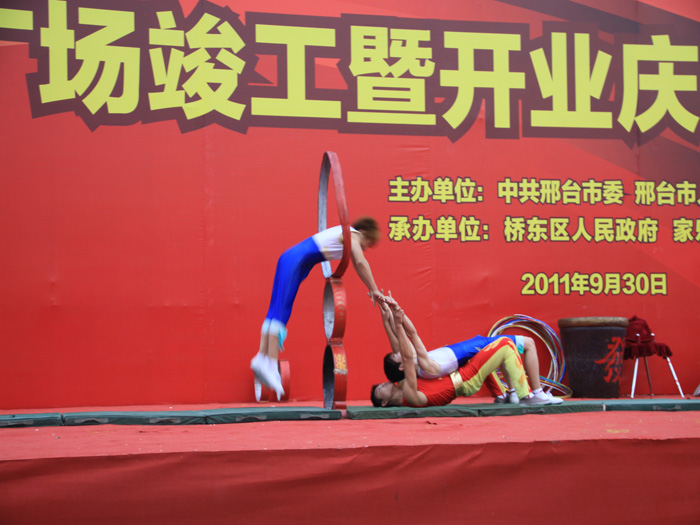 10月1日至10月6日,邢臺·天一廣場開業慶典期間,邀請吳橋雜技團為光臨天一廣場顧客奉獻了繽紛精彩的雜技節目。