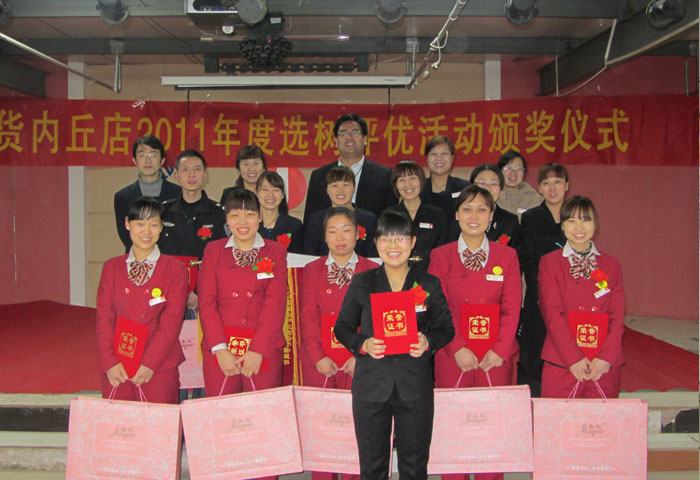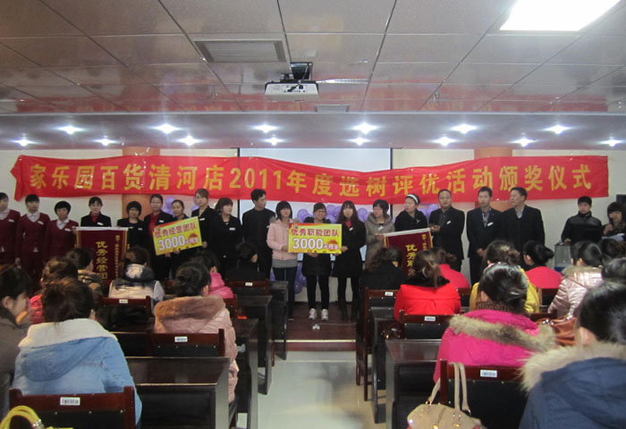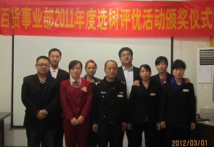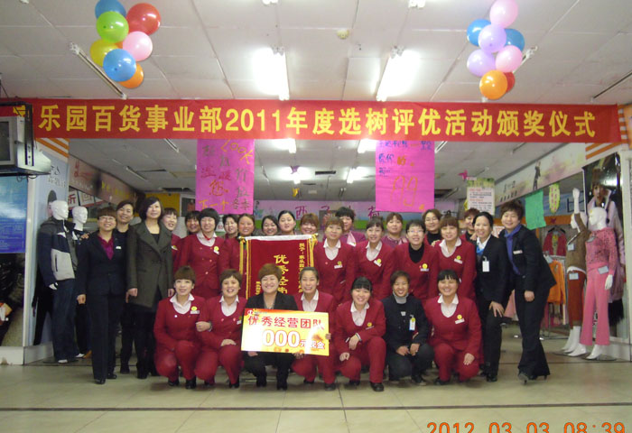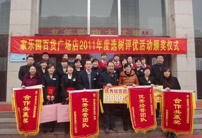 家樂園百貨事業部秉承“家”文化的內涵,關愛家人的成長,為每個員工提供施展才華的平臺,培養出一大批優秀的基層員工和基層管理人員。為弘揚正氣、表彰先進、樹立典型、激勵員工奮發上進,家樂園百貨事業部通過2011年度選樹評優活動,評選出優秀個人58名、優秀團隊11名、合作共贏優秀供商2名。并于2012年3月1日-3月3日期間,由事業部總經理劉麗葉、常務副總經理夏小紅、副總經理崔國銘分別赴家樂園百貨各門店進行頒獎。當紅紅的證書、沉甸甸的獎品、耀眼的錦旗頒發到獲獎人員手中時,2011年所有的汗水、淚水都在這一刻成為每位員工腦海中刻骨銘心的記憶。回想2011,對于每個人是一種提升也是一種收獲,讓我們把昨天的快樂和收獲作為動力;展望2012,再接再厲,奮發圖強,共同開創家樂園百貨事業部輝煌的篇章!