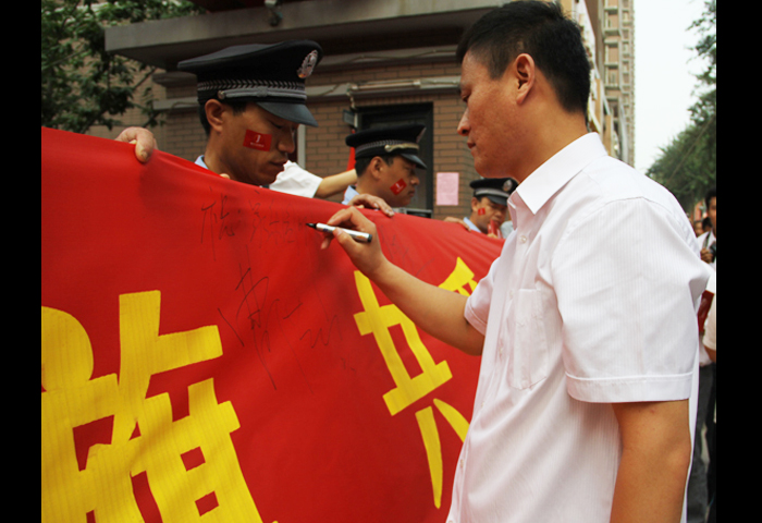 2012年7月17日,“同傳一面旗,共愛一個家”司旗傳遞抵達天一城小區站,我們在這里傳遞司旗,傳遞激情與夢想!