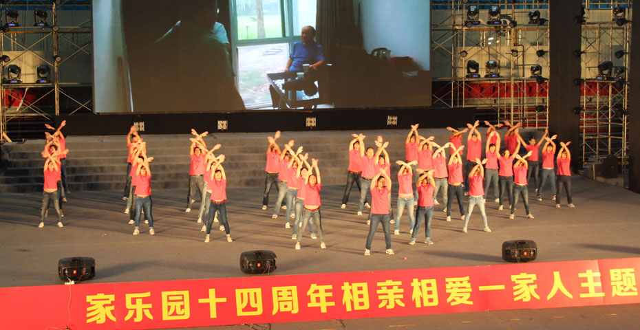 伴隨著國旗的冉冉升起,“家樂園集團14周年慶典儀式”于7月18日下午14時準時開始。董事長廖禮基上臺與在座的4000余名員工共同分享家樂園這14年來的艱辛歷程和輝煌成就,并一再強調這輝煌的背后,是所有家樂園人在支撐,所有的成就,都屬于家樂園員人!分享過后,儀式進入第二個環節——精彩的會操比賽。各單位共計16支隊伍將自己最佳的狀態通過會操體現出來。這并不只是簡單的會操比賽,通過比賽,我們看到了“家人們”的精氣神,看到了一種拼搏、奮進、愛家的精神。比賽過后,跟隨了家樂園14年的6名老員工分享了自己與企業的成長經歷。14年,風雨變幻,唯一不變的,是對家的情,對家人的愛。